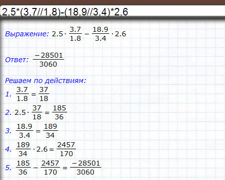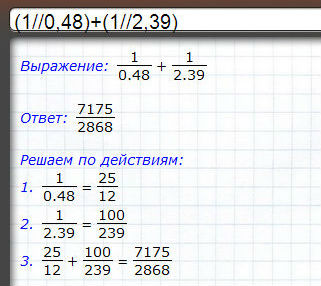 2)1/0,48+1/2,39= 3)2,5*3,7/1,8-18,9/3,4*2,6=
