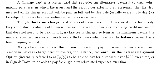 what is a charge card? What kind of payment does it provide?