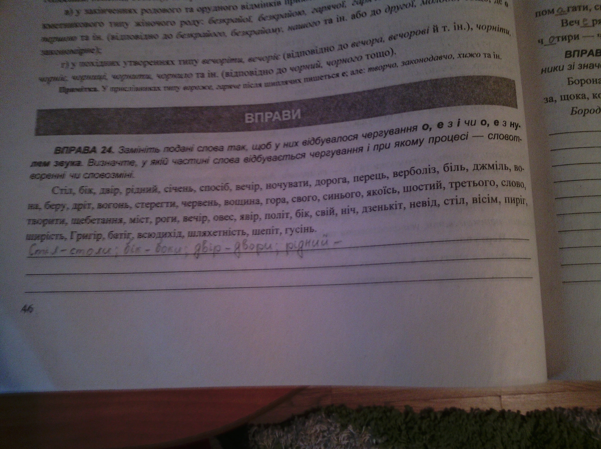 Столи, боки, двори, родина, січня, способу, вечора, ніч, доріг, перцю, верболозу, болю, джмеля, він, брати, дроту, вогню, сторож, червоне, віск, гір, свій,синій, якісь, шести, третій, слів, твір, щебіт, мости, ріг, вечора, вівса, явора, боки, свого, ночі, дзінь, невода, столи, восьми, пирога, щирості, Григора, батога, всюдихода, шляхетності, шепоту, гусені.