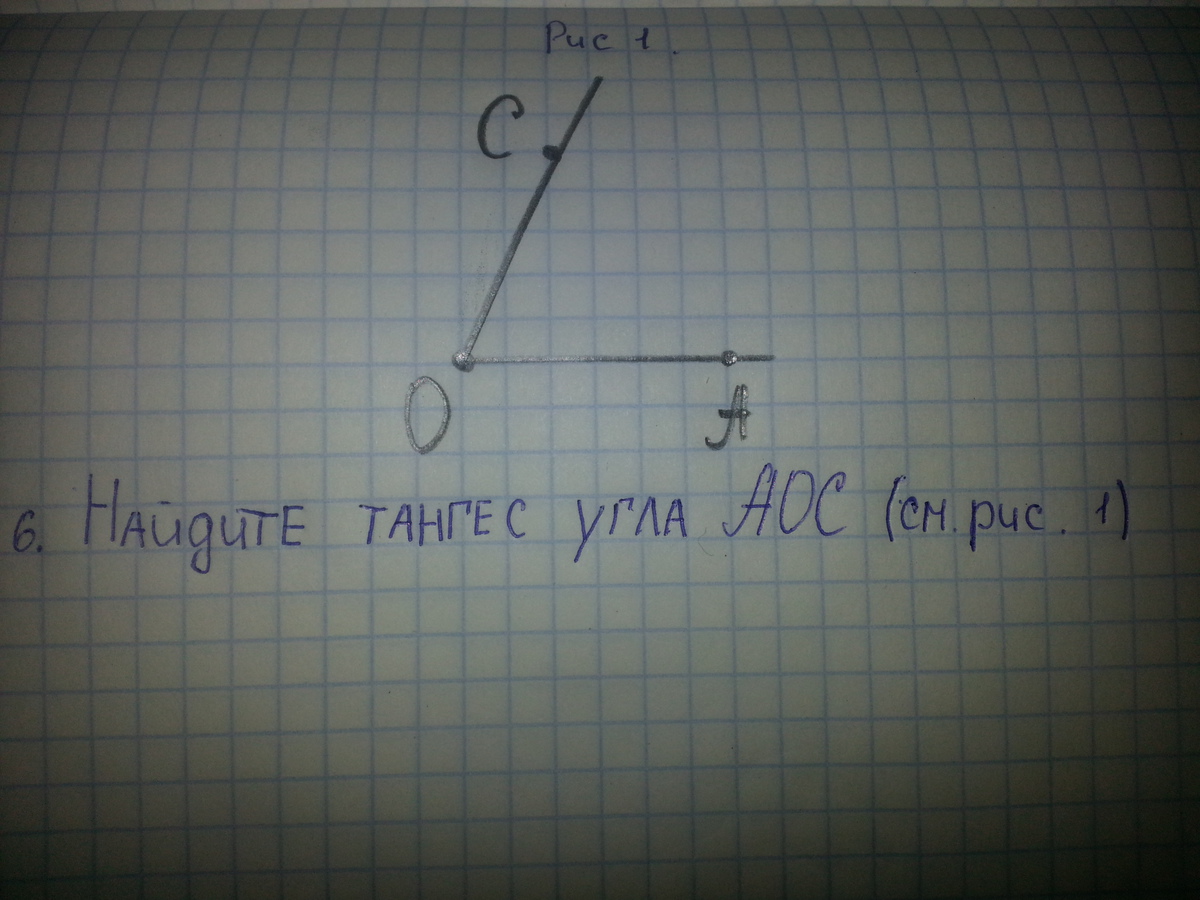 tg-отношение противолежащего к прилежащему катетов,дострой угол до прямоугольного треугольника и увидешь, что tgAOC=6/3=2