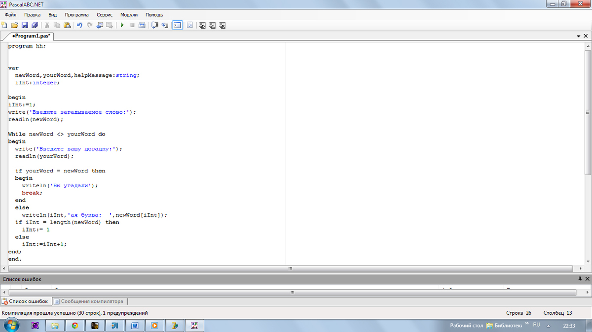 Напишите программу для угадывания слова. Она должна запрашивать от