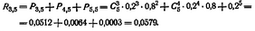 Событие, о котором идет речь, сводится к тому, что будет нарушена связь не менее чем с тремя станциями. По формуле получим: