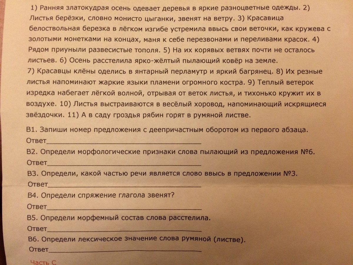 В5 - префикс (рас), корень (стел), суффикс (ил) окончание (а)