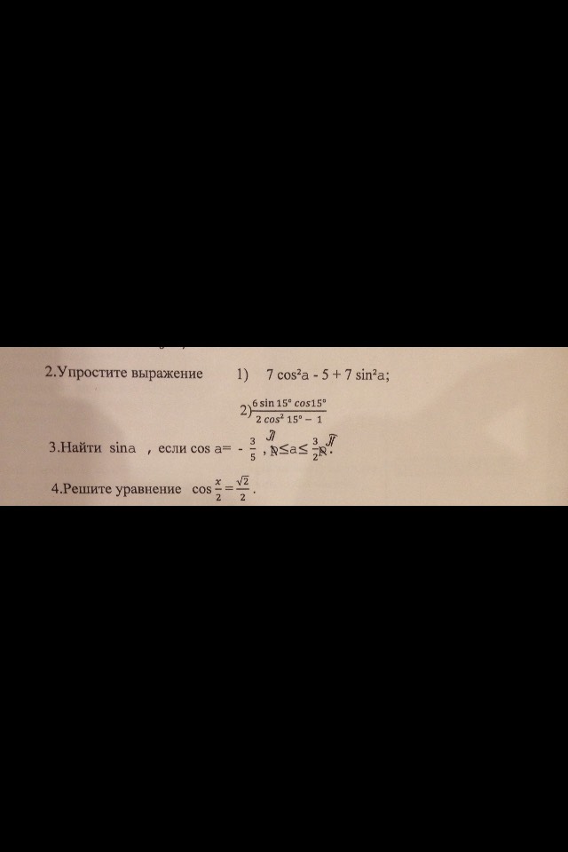 1) 7cos²α - 5 + 7sin²α = 7*(sin²α + cos²α) - 5 = 7*1 - 5 = 7 - 5 = 2