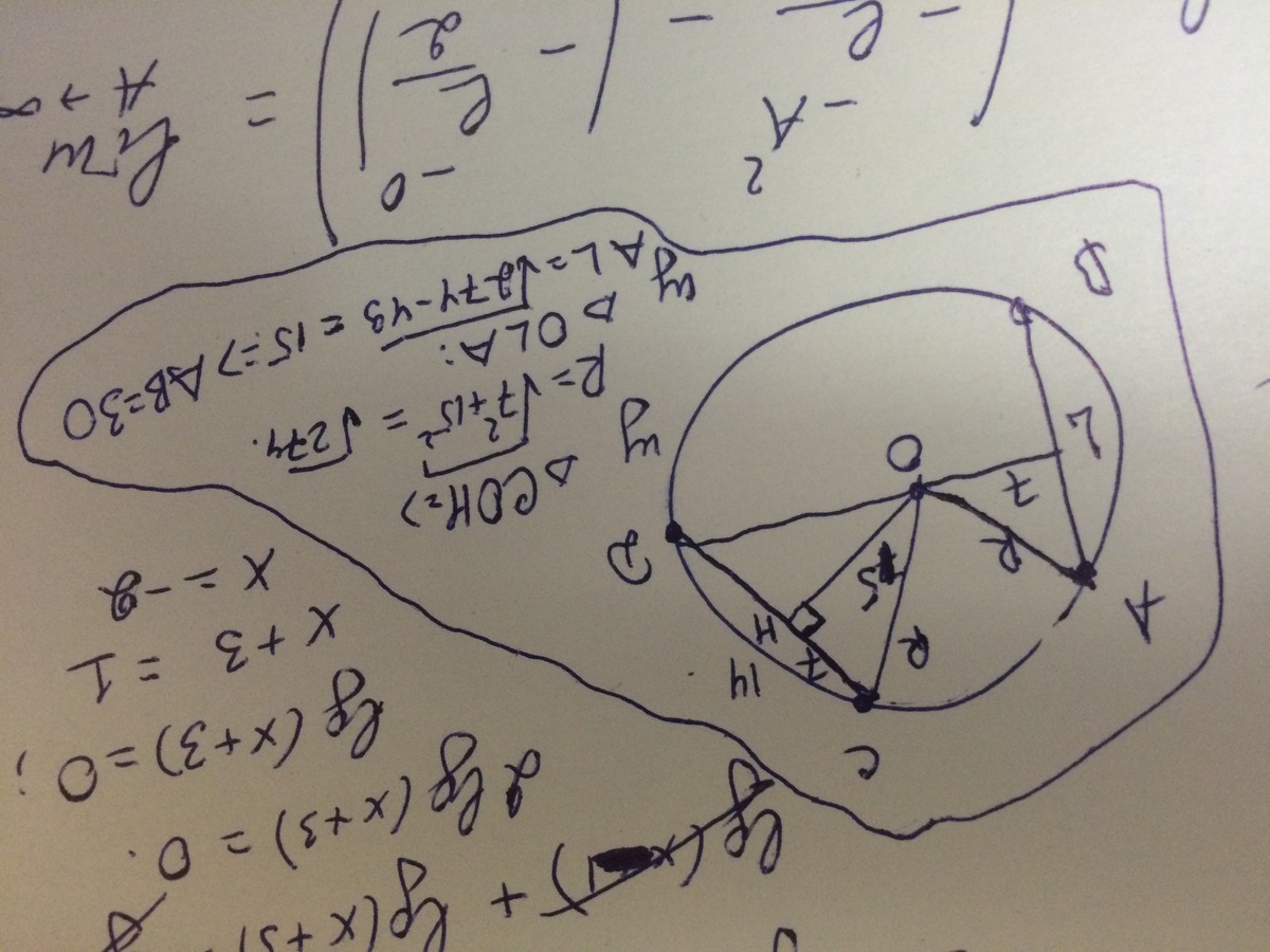 отрезки АВ и СD являются хордами окружности. Найдите длину хорды АВ, если СD = 14, а расстояния от центра окружности до хорд АВ и СD равно соответственно 7 и 15.