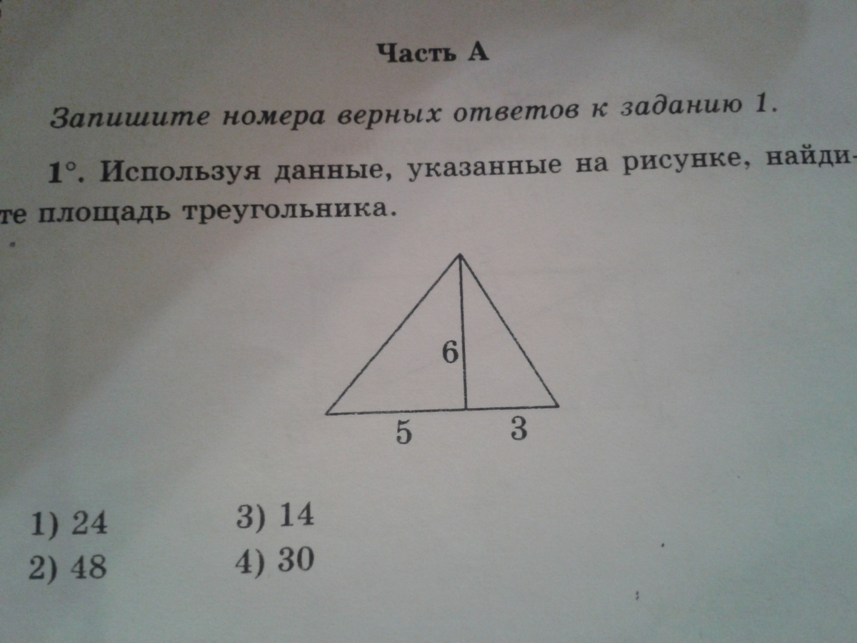 2) площадь треугольника равна половине произведения стороны на высоту,опущенную на данную сторону S=1/2*8*6=24 см2