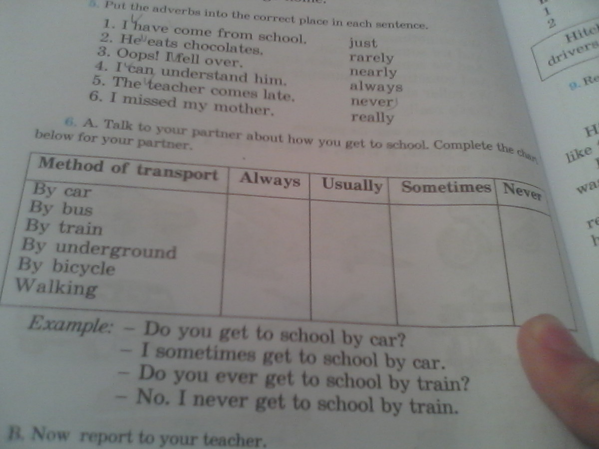 Talk to your partner about you get to school complete the chart below for your partner сфоткайте ответ если получится зарание спасибо