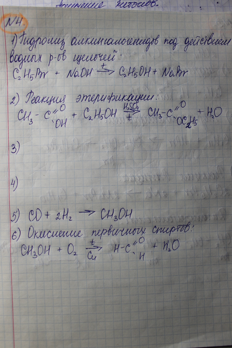 4)бромэтан-этанол-этиловый эфир этановой кслоты-оксид углерода(4)-оксид углерода (2)-метанол-метаналь