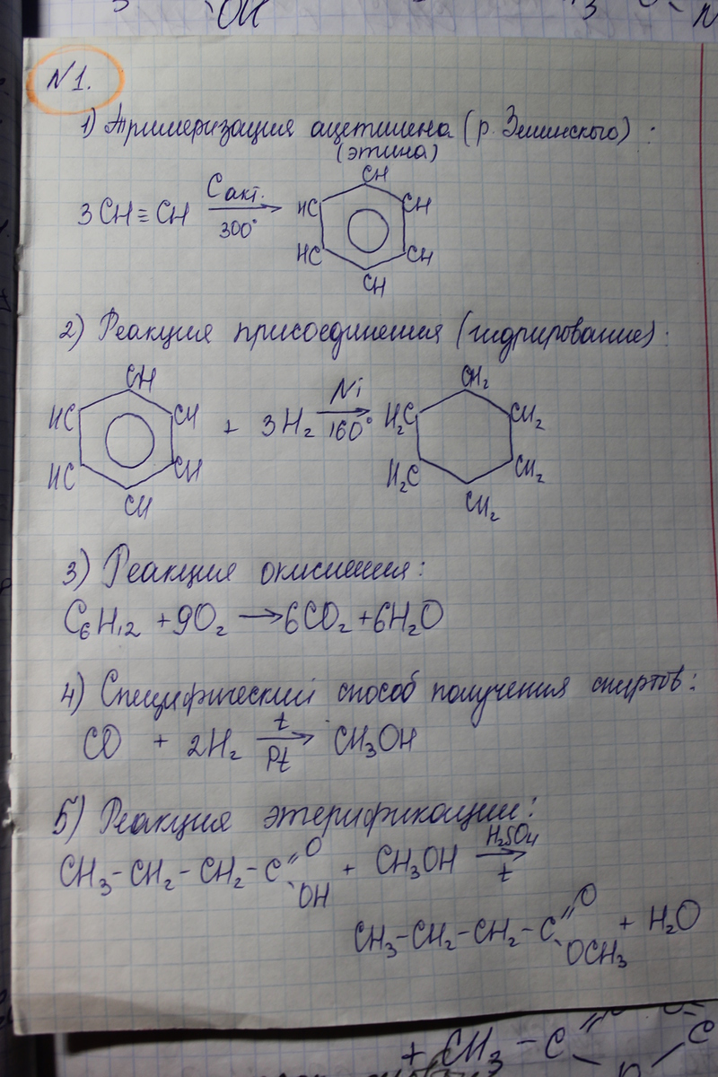 1)Этин-бензол-циклогексан-оксид углерода(2)-метанол-метиловый эфир бутановой кислоты.