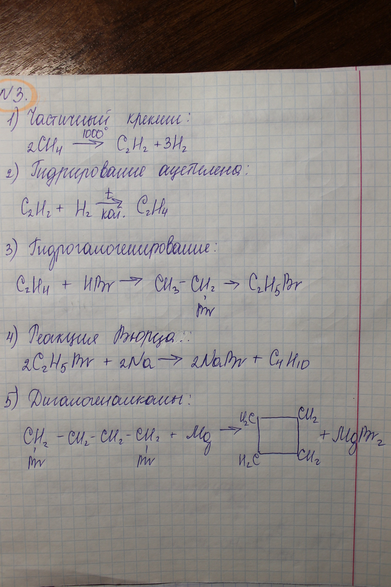 3)метан-этилен-бромэтан-бутан-циклобутан