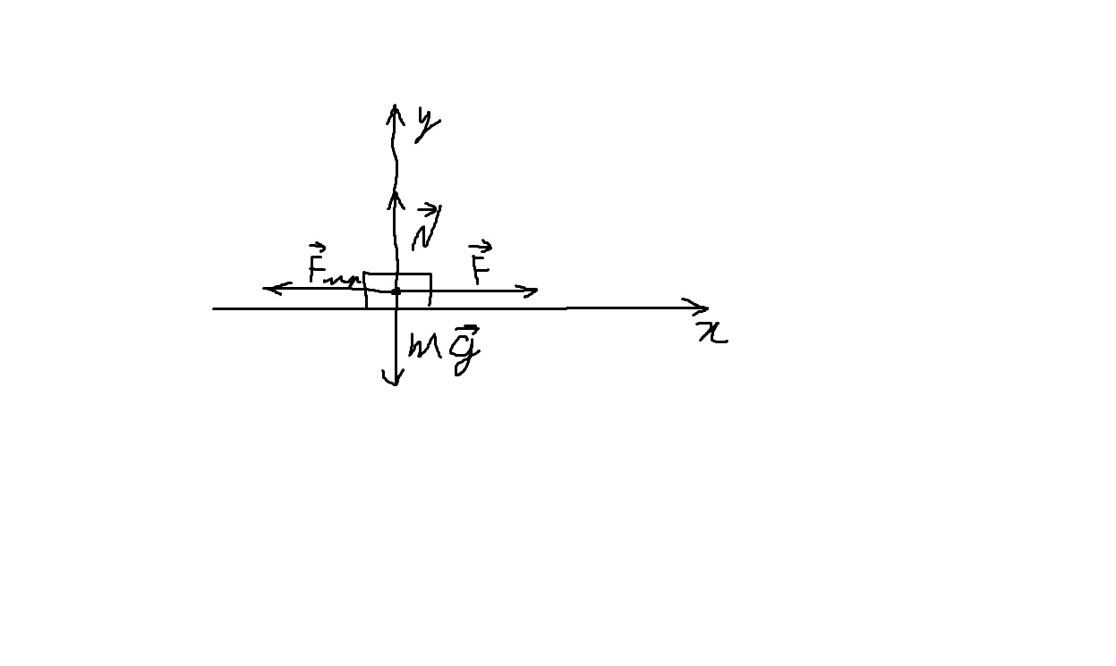 Направим ось x по направлению движения бруска, ось y - вертикально вверх, запишем второй закон Ньютона в векторной форме: