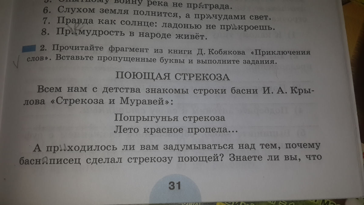 Помогите !!! Нужно прочитать текст из книги Д.Кобякова " Приключения слов " и вставить пропущенные буквы и выполнить задания !!!