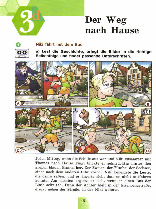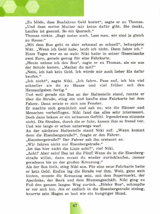 Немецкий. Нужно в тексте найти описание Ники, Томаса и водителя автобуса. СРОЧНО