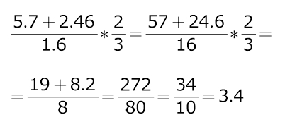 8,16/1,6 х 2/3 = 5,1 х 2/3 = 51/10 х 2/3 = 17/5 = 3,4