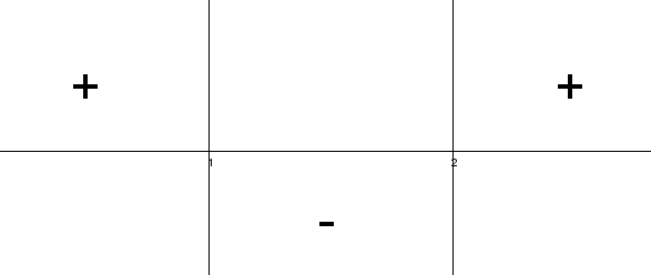Отметим корни на числовой прямой и определим знаки на интервалах.