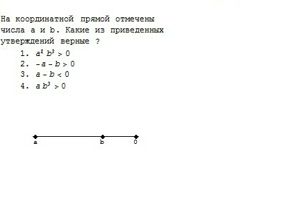 На координатной прямой отмечены числа а и b. Какие из приведенных утверждений верные?