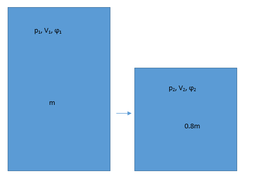 Объемом образовавшейся жидкости пренебрегаем. Значит, весь объем во втором состоянии занимает только воздух массой m-0.2m=0.8m
