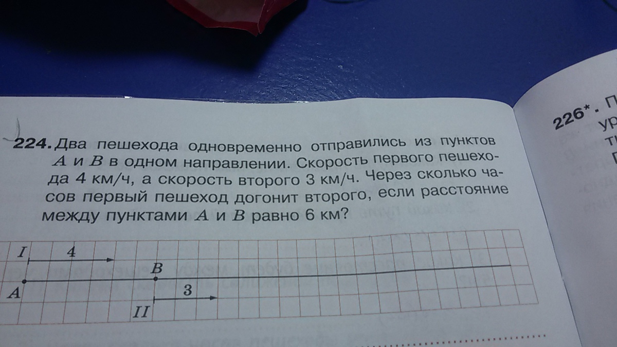 1) 4 - 3 = 1 (км/ч) на столько первый проходит больше чем второй