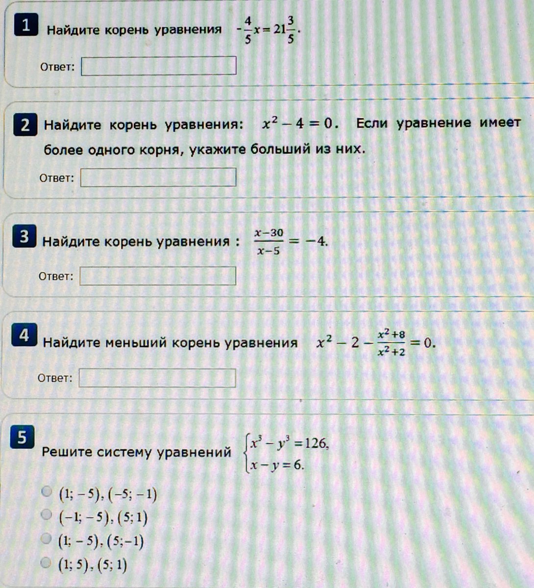 1) -4/5*x⇒=21целая3/5⇒-4/5*x⇒=108/5⇒x=108/5:(-4/5)⇒