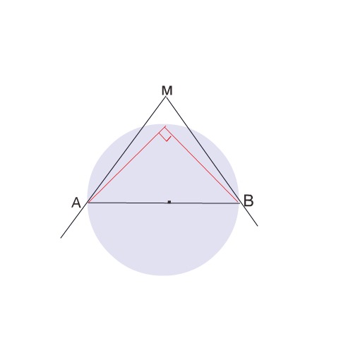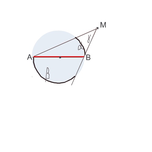 Дана окружность с диаметром AB. Доказать, что из любой точки M, лежащей вне круга и не на прямой AB, диаметр ABвиден под ост- рым углом.