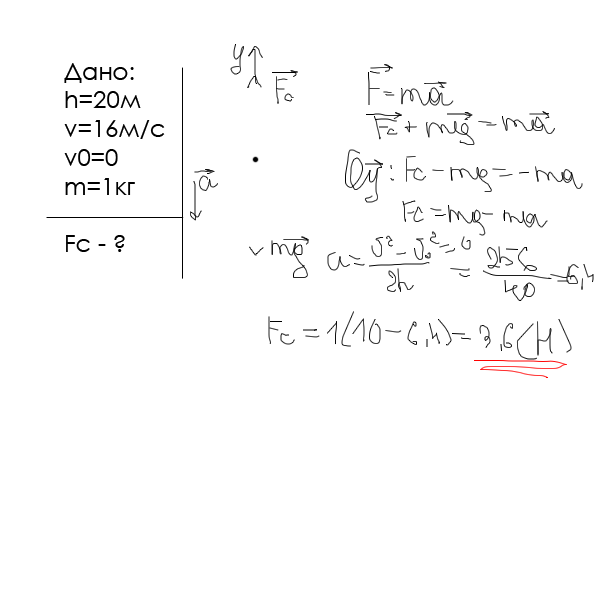 Тело падает без начальной скорости с высоты 20 м и в момент падения на землю имело скорость 16 м/с. Масса тела равна 1 кг. Определите среднюю силу сопротивления воздуха при падении (в Hьютонах)