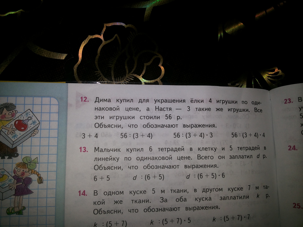 56:(3+4)*4- сколько денег отдали за 4 игрушки