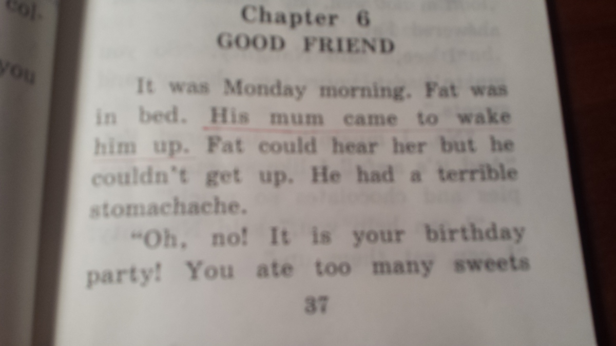 Было утро понедельника. Фэт лежал в кровати. Его мама пришла, чтобы разбудить его. Фэт слышал её, но не мог встать. У него была ужасная боль в животе.