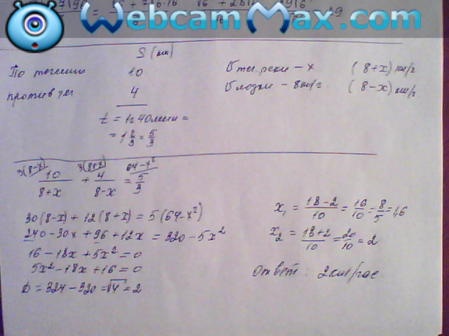 лодка прошла 10 км по течению реки а затем 4 км протев течения затратив на весь путь 1 час 40 минут опредилите какой может быть скорость течения если собственная скорость лодки равна 8км/ч
