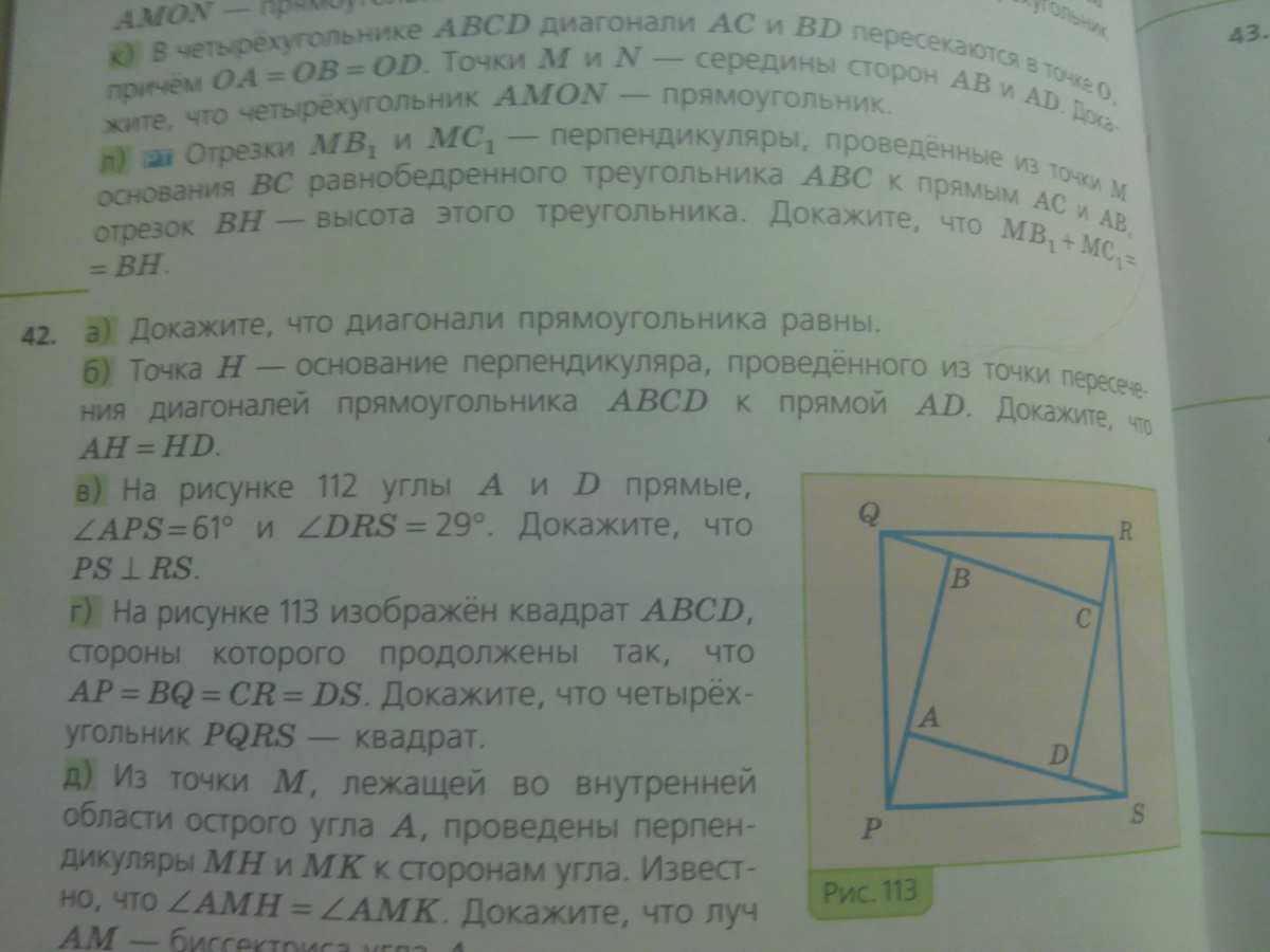 BD=AC, как соответствующие элементы равных треугольников, т. о ABCD-прямоугольник (по определению