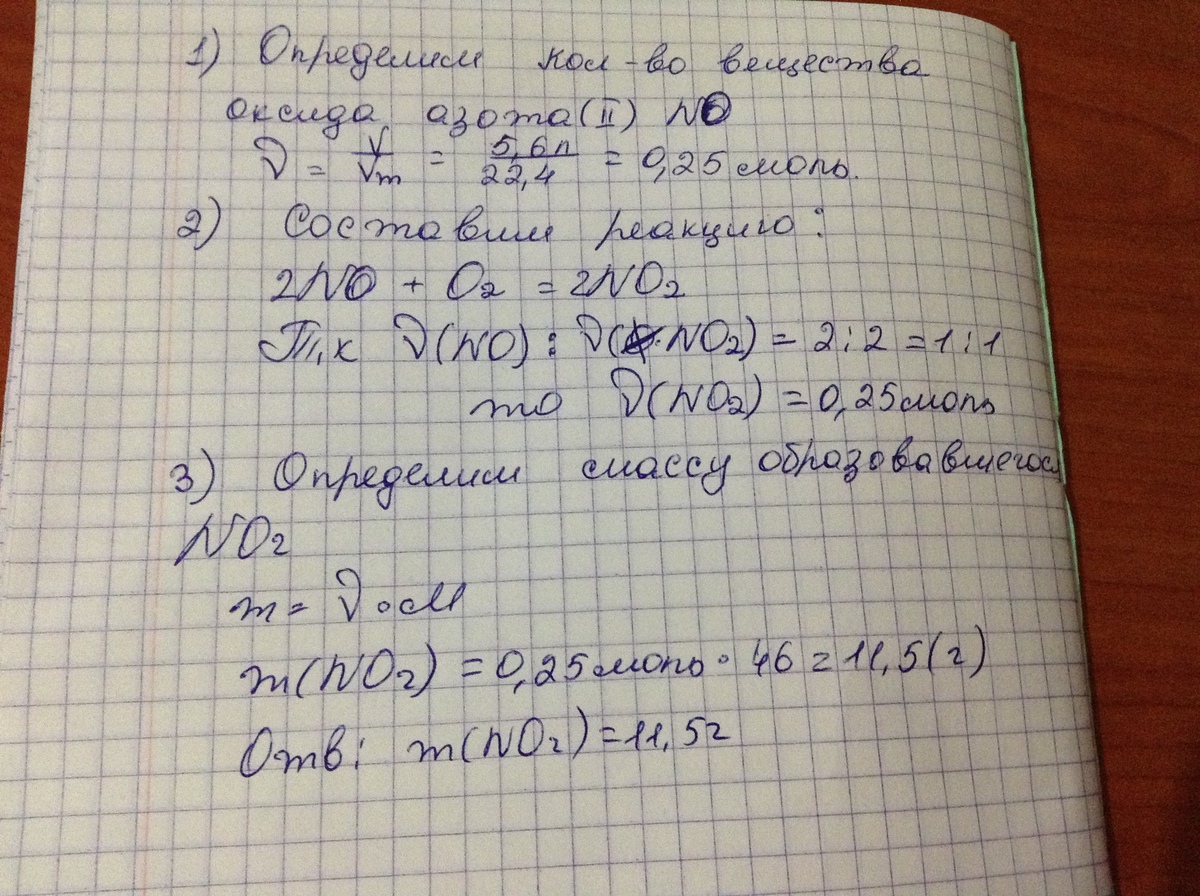 Какое вещество и сколько граммов его должно образоваться из 5,6 л оксида азота (||) при взаимодействии с избытком кислорода ?