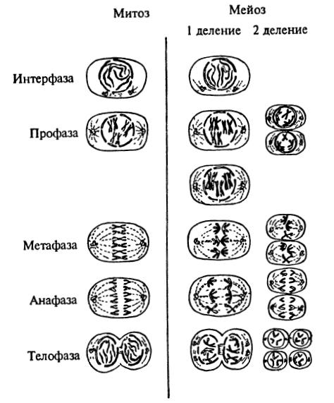 гаплоидный набор.Митоз состоит из одного деления, а мейоз – из двух.При