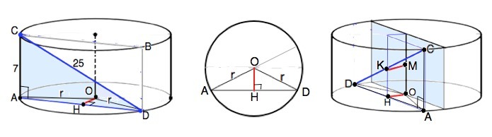 отрезок CD=25 см, его концы лежат на разных окружностях оснований цилиндра. найдите расстояние от отрезка CD до оси цилиндра, если его высота 7см а диаметр основания 26 см ». Искать только «отрезок CD=25см, его концы лежат на разных окружностях оснований цылиндра. найдите расстояние от отрезка CD до оси цылиндра, если его высота 7см а диаметр основания 26 см».