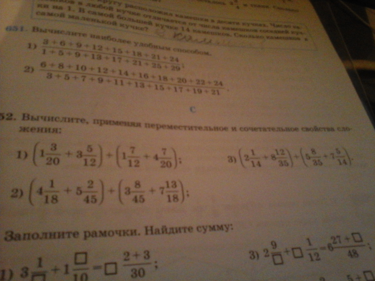 Вычислите, применяя переместительное и сочетательное свойства сложения: