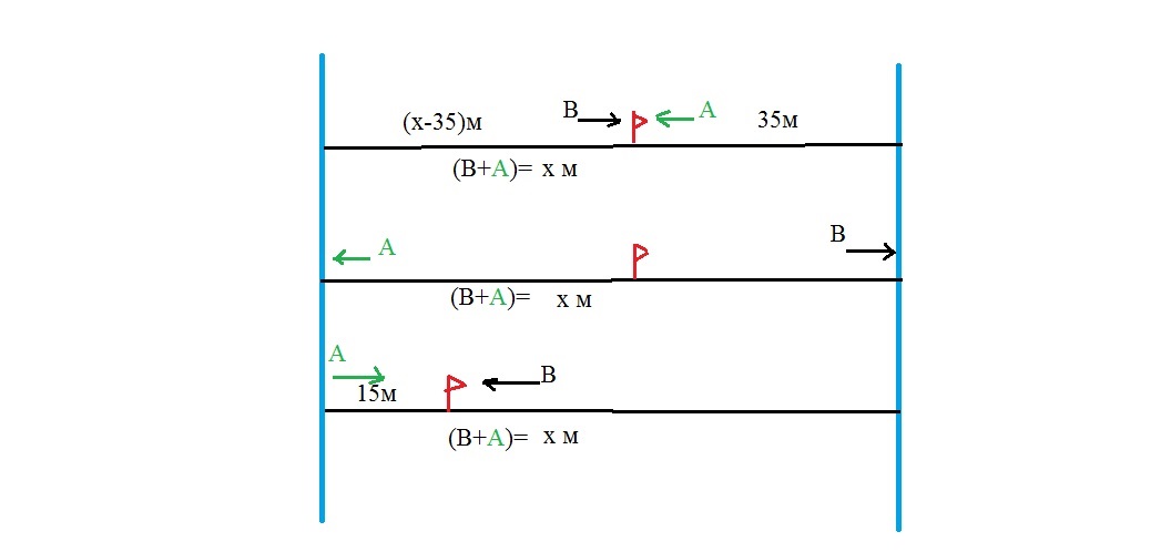 (х-35)*3 м - дистанция Вари до ІІ встречи