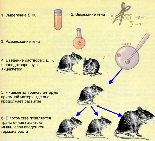 Генная инженерия : из организма выделяют гены , проводят с ними манипуляции и внедряют в другой организм ( так получают генномодифицированные организмы)