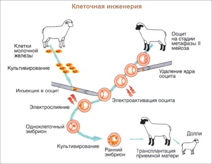 Клеточная инженерия : создание новых клеток, клонирование клеток, получение тканей.