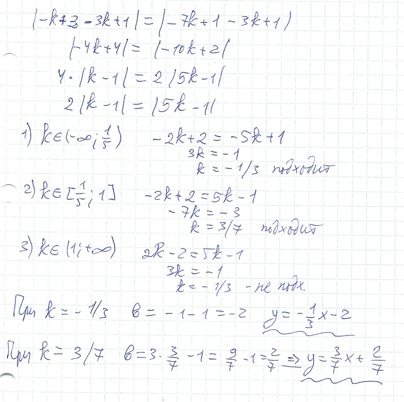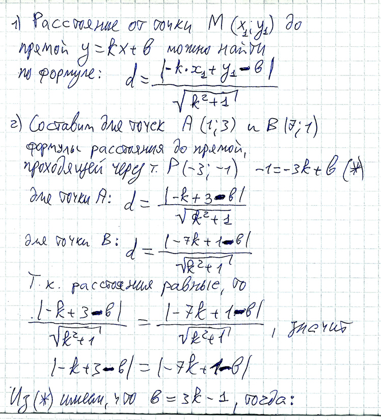 Через точку Р(-3;-1) провести прямую так, чтобы она прошла на одинаковом расстоянии от точек А(1;3) и В(7;1).