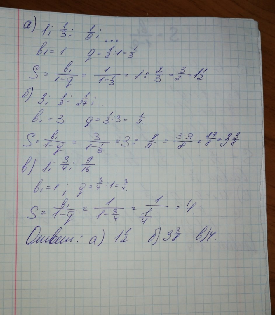 Найдите сумму всех членов бесконечно убывающей геометрической прогрессии: