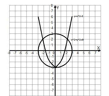 при каком значении р система уравнений имеет три решения? х (в квадрате) + у( в квадрате) =9 у -х ( в квадрате= р