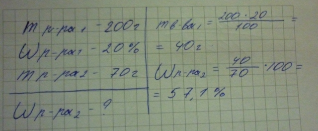 какова массовая доля сахара в растворе, полученом при упаривании 200г 20%-го раствора до 70г? ответ округлить до десятых