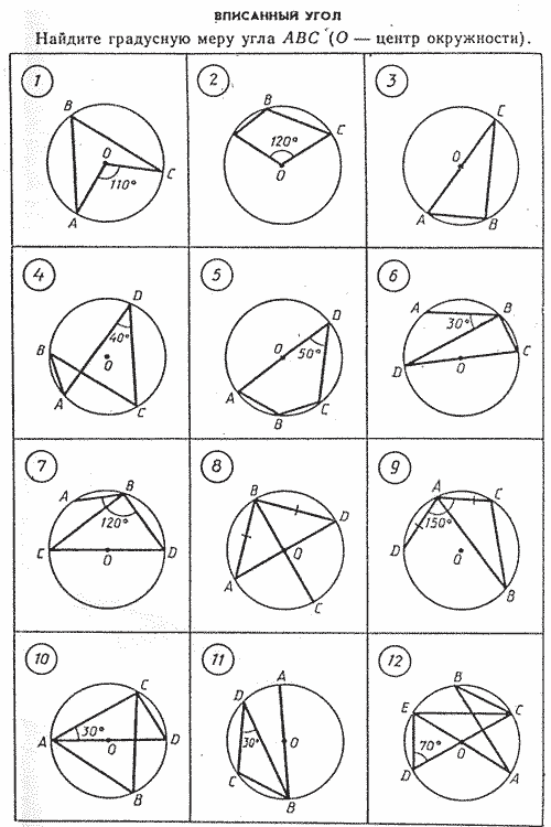11. Дуга СВ = 60; дуга АС (маленькая) = 120. Угол АВС = 60