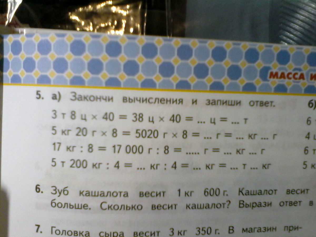 в)6т:5=6000кг:5=1200кг=1т 200кг;
