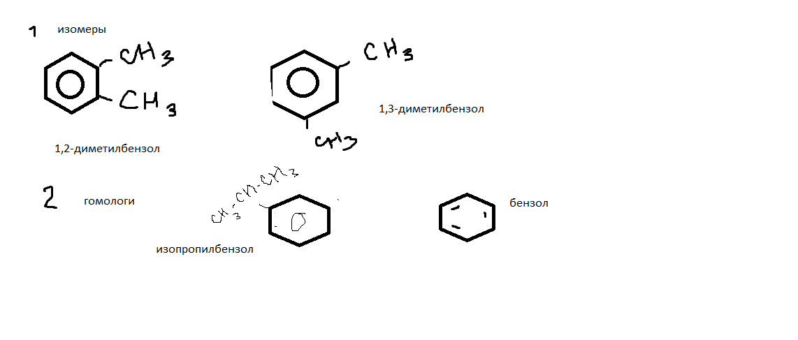 Напишите структурные формулы двух изомеров и двух гомологов этилбензола. Назовите вещества по номенклуатуре IUPAC