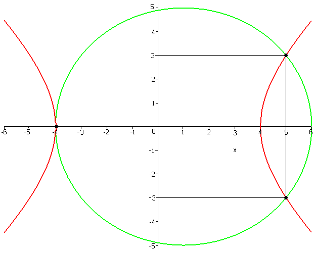 б) (рис.2) точки (-4; 0), (5; 3), (5; -3)