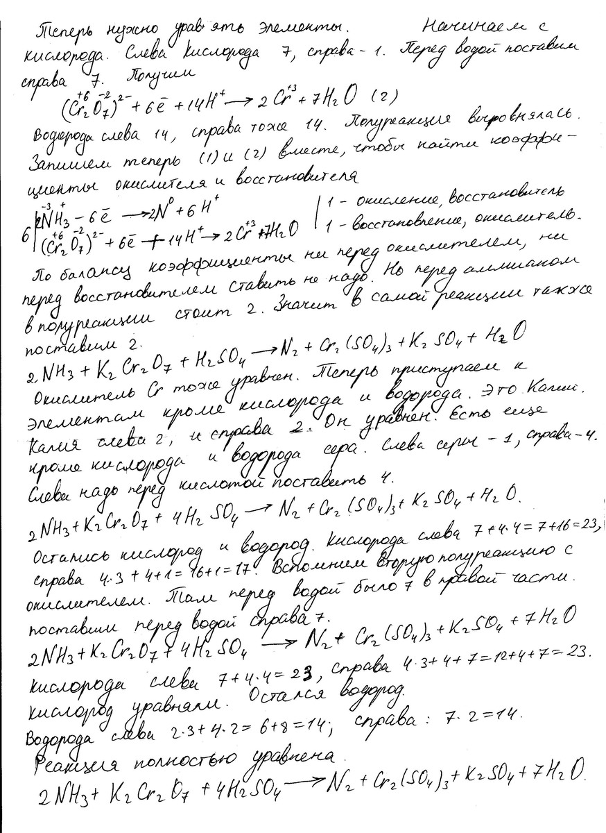a) Nh3+K2Cr2O7+H2SO4=N2+Cr2(SO4)3+K2SO4+H2O