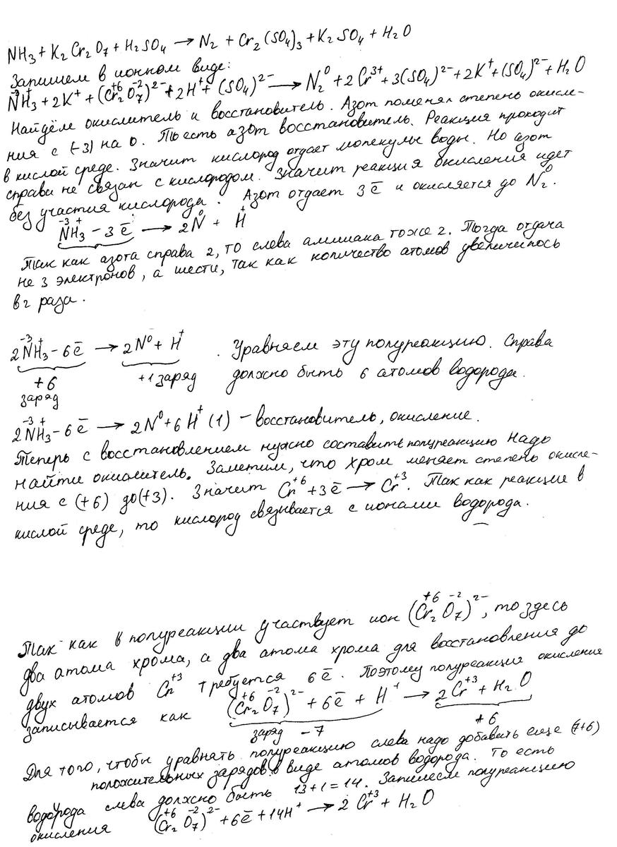 1.2NH3 +K2Cr2O7 +4 H2SO4 = N2+Cr2(SO4)3 +K2SO4 +7H2O