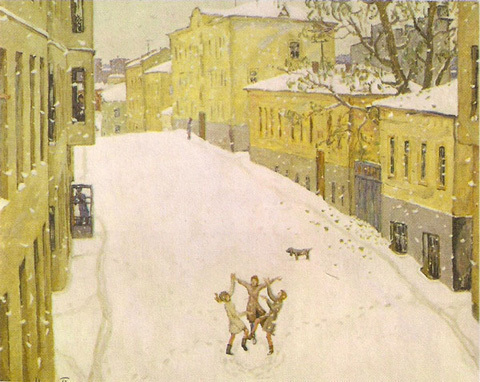 И вдруг однажды утром мама зашла ко мне в комнату, загадочно улыбаясь. Я сразу понял: снег! Мигом спрыгнув с кровати, я очутился у окна.