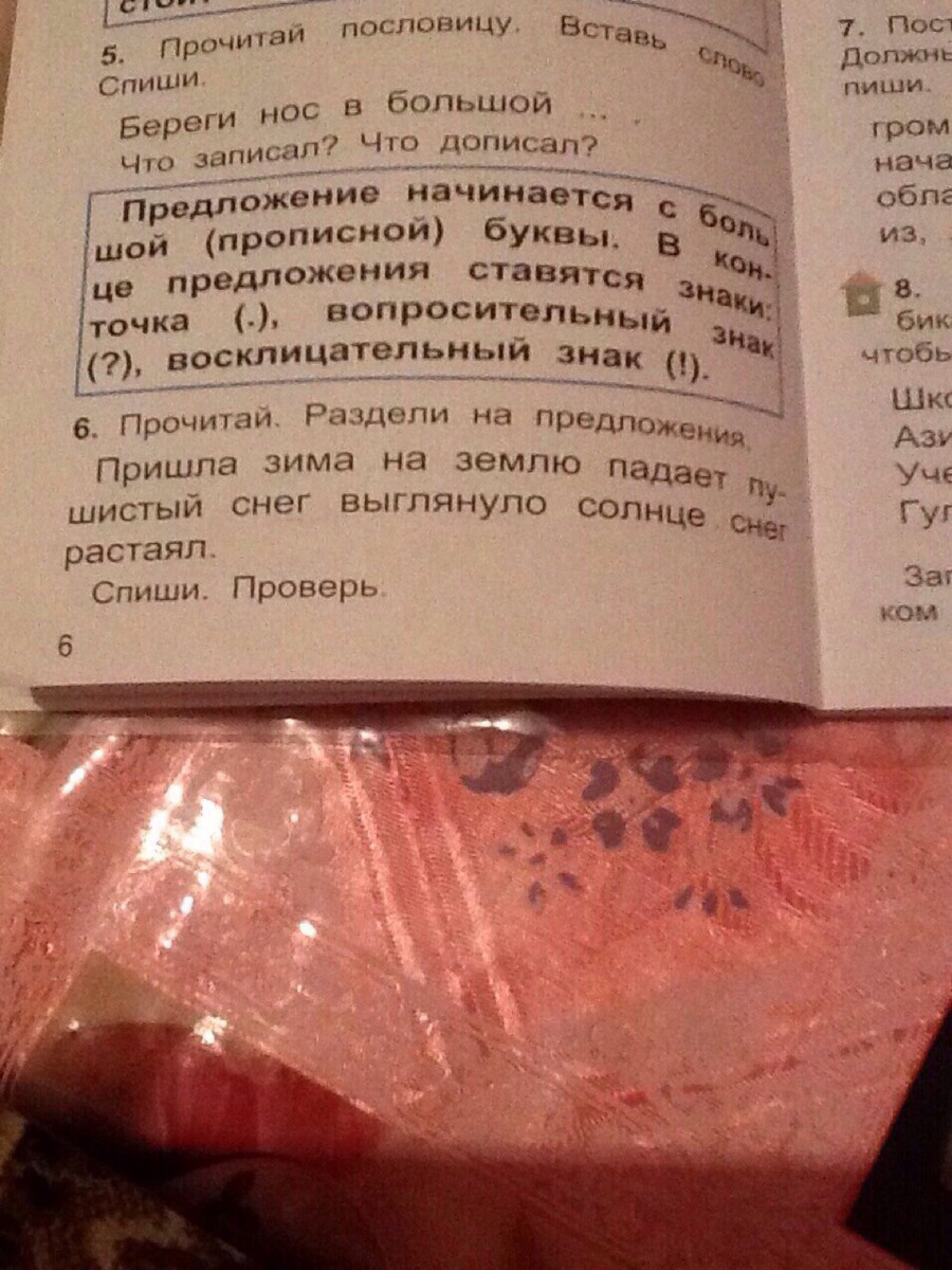 Пришла зима на землю падает пушистый снег вышло солнце снег растаял . Помогите как првельно написать предложения поставить знаки припенания