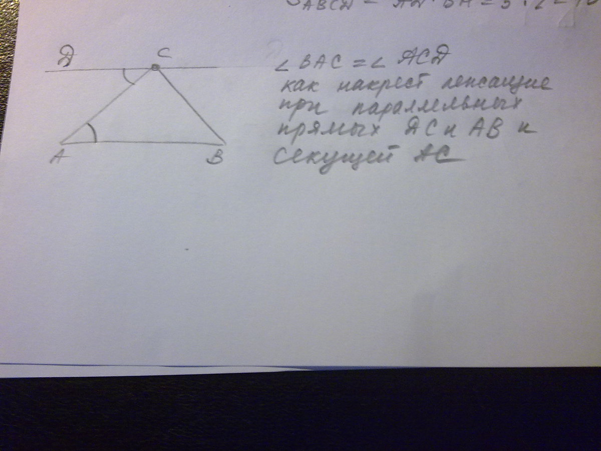 Дан треугольник ABC .Через его вершину C проведена прямая CD параллельно стороне AB .Докажите ,что углы BAC и ACD равны.