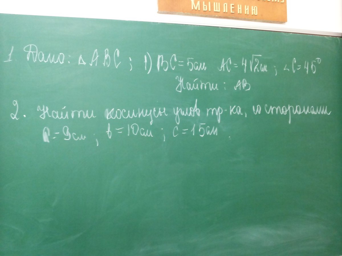 1) Если известны две стороны и угол между ними, то третья сторона находится по формуле косинусов: